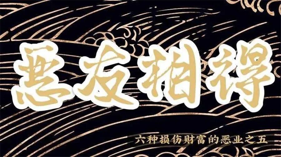 交往恶友,不仅会让我们近墨者黑,也是损失财物的恶因之一。因为交友不慎而损失财物的报道屡见不鲜。因此,选择益友,还是损友,这一点至关重要。